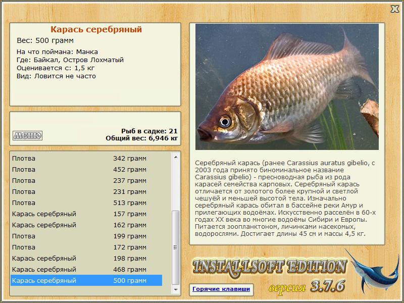 В нашей стране известны поимки особей золотого карася 45 см длиной и весом до 3 кг, а самый крупный зарегистрированный за последние годы экземпляр серебряного карася весил лишь чуть более двух килограммов.