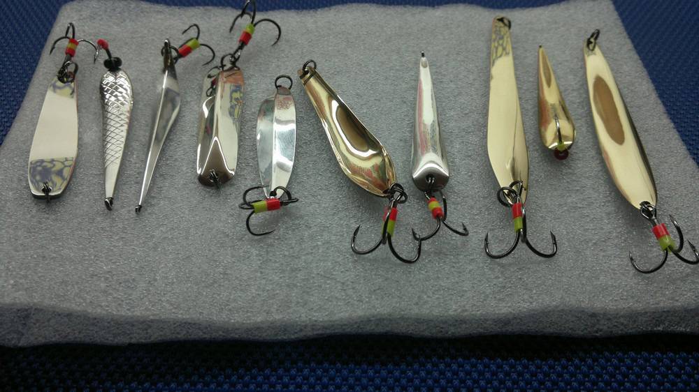 Отлично подходят такие блесны, как Crazy Ivans, Honeybees, Mooselook Wobblers и Speedi Shiners медного, оранжевого, красного или розового цвета.