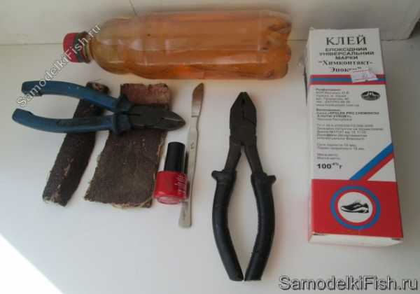 Минимум инструментов, которые найдутся в любом доме: пассатижи, бокорезы, острый нож, наждачная бумага разной зернистости, краска того цвета, которым будет окрашен П-П, быстросохнущий лак и эпоксидная смола или клей.