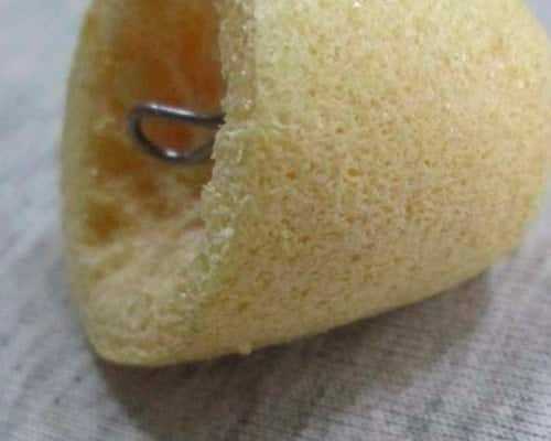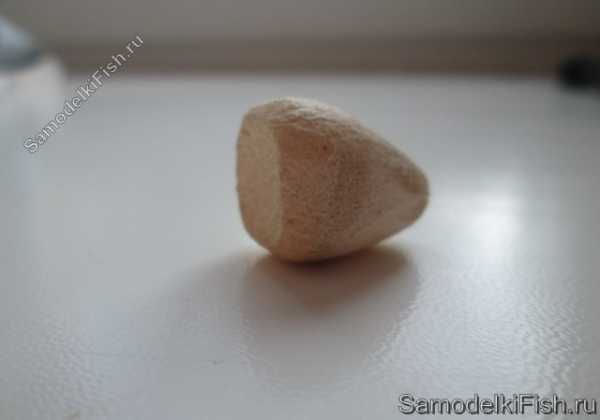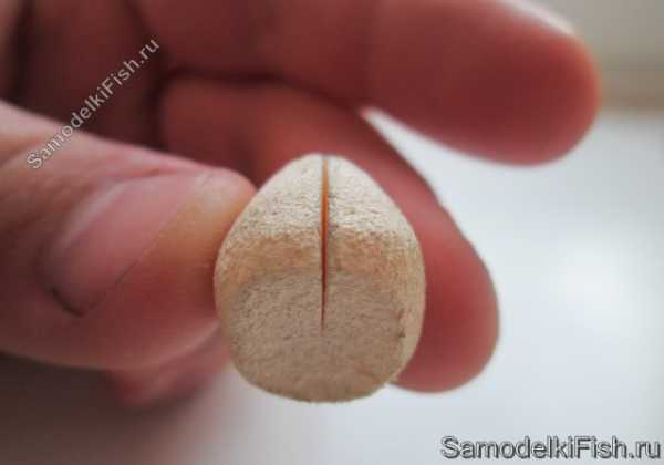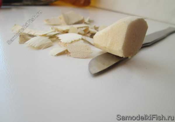 Первым делом нужно придать заготовленному пенопласту форму при помощи ножа, размер приманки при этом не должен составить более 30 мм.