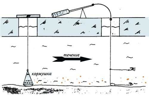 - ΠΡΠΈΠΊΠ°ΡΠΌΠ»ΠΈΠ²Π°Π½ΠΈΠ΅ Π²Π΅Π΄Π΅ΡΡΡ ΠΏΠΎΡΡΠ΅Π΄ΡΡΠ²ΠΎΠΌ ΠΎΡΠ΄Π΅Π»ΡΠ½ΠΎΠΉ ΠΏΡΠΈΠΊΠΎΡΠΌΠΎΡΠ½ΠΎΠΉ Π»ΡΠ½ΠΊΠΈ, ΡΠ°ΡΠΏΠΎΠ»ΠΎΠΆΠ΅Π½Π½ΠΎΠΉ Π²ΡΡΠ΅ ΠΏΠΎ ΡΠ΅ΡΠ΅Π½ΠΈΡ ΠΌΠ΅ΡΡΠ° Π»ΠΎΠ²Π»ΠΈ.