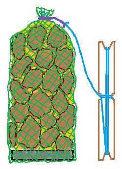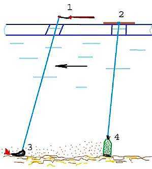 ΠΠΎΡΠ»ΠΎΠ²ΠΈΠ½Π° ΠΊΠΎΡΠΌΡΡΠΊΠΈ Ρ ΠΏΡΠΈΠΊΠΎΡΠΌΠΊΠΎΠΉ Π·Π°ΡΡΠ³ΠΈΠ²Π°Π΅ΡΡΡ ΡΠΎΠ»ΡΡΠΎΠΉ ΠΊΠ°ΠΏΡΠΎΠ½ΠΎΠ²ΠΎΠΉ Π½ΠΈΡΠΊΠΎΠΉ (4). Π Π½ΠΈΡΠΊΠ΅ ΠΏΡΠΈΠ²ΡΠ·ΡΠ²Π°Π΅ΡΡΡ Π»Π΅ΡΠΊΠ° ΠΈΠ»ΠΈ ΡΠΎΠ½ΠΊΠΈΠΉ ΠΊΠ°ΠΏΡΠΎΠ½ΠΎΠ²ΡΠΉ ΡΠ½ΡΡ (5), Π½Π°ΠΌΠΎΡΠ°Π½Π½ΡΠΉ Π½Π° Π΄Π»ΠΈΠ½Π½ΠΎΠ΅ ΠΌΠΎΡΠΎΠ²ΠΈΠ»ΡΡΠ΅ ΠΈΠ· Π΄ΡΠ΅Π²Π΅ΡΠΈΠ½Ρ (6), ΠΊΠΎΡΠΎΡΠΎΠ΅ ΠΏΠΎΡΠ»Π΅ ΠΎΠΏΡΡΠΊΠ°Π½ΠΈΡ ΠΌΡΠ³ΠΊΠΎΠΉ ΠΊΠΎΡΠΌΡΡΠΊΠΈ ΠΏΠΎΠ΄ Π²ΠΎΠ΄Ρ ΡΠΊΠ»Π°Π΄ΡΠ²Π°Π΅ΡΡΡ ΠΏΠΎΠΏΠ΅ΡΠ΅ΠΊ Π»ΡΠ½ΠΊΠΈ.