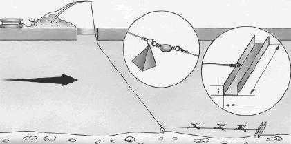 ΠΠ»Ρ ΡΡΠ°ΡΠΈΠΎΠ½Π°ΡΠ½ΠΎΠΉ Π»ΠΎΠ²Π»ΠΈ Π»Π΅ΡΠ° ΠΊΠΎΡΠΌΡΡΠΊΠ° ΠΎΠΏΡΡΠΊΠ°Π΅ΡΡΡ ΠΏΠΎΠ΄ Π»Π΅Π΄ ΠΏΡΠΈΠΌΠ΅ΡΠ½ΠΎ Π½Π° 70-100 ΡΠΌ Π²ΡΡΠ΅ (ΠΏΡΠΎΡΠΈΠ² ΡΠ΅ΡΠ΅Π½ΠΈΡ) ΠΎΡ ΡΠ°Π±ΠΎΡΠ΅ΠΉ Π»ΡΠ½ΠΊΠΈ Ρ ΠΎΠΏΡΡΠ΅Π½Π½ΠΎΠΉ Π² Π½Π΅Π΅ Π·ΠΈΠΌΠ½Π΅ΠΉ ΡΠ½Π°ΡΡΡΡ Π΄Π»Ρ Π»ΠΎΠ²Π»ΠΈ Π»Π΅ΡΠ°.