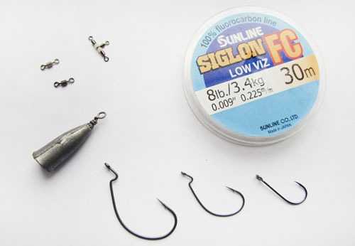 К вопросу, что лучше применять с отводным поводком в качестве основной лески на спиннинге, леску или шнур – ответ: шнур, т.к. он дает лучшую чувствительность, та и прочность снасти с ним солиднее. Что касается поводка, на котором крепится грузило – однозначно 100% флюорокарбон. Крючок: в коряжистых местах – офсетный, в чистых – одинарный, в редких случаях — двойник. Приманки можно использовать самые разные, все многообразие современной съедобки: виброхвосты, твистеры, слаги, черви, раки и т.д.