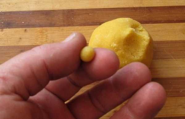 Далее необходимо дать ей настояться в течение 3-4 часов. Мастырка готова — из нее можно делать шарики и цеплять их на крючок.