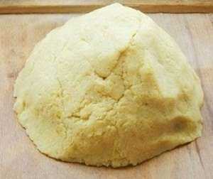 - Делается обычное тесто из муки — смесь муки и воды, довольно вязкое, так как горох сам по себе нейтральный по вязкости.