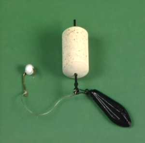 Например, можно предложить монтаж донной снасти с использованием трубочки противозакручивателя с закрепленным на ней поплавком (рис. 62).