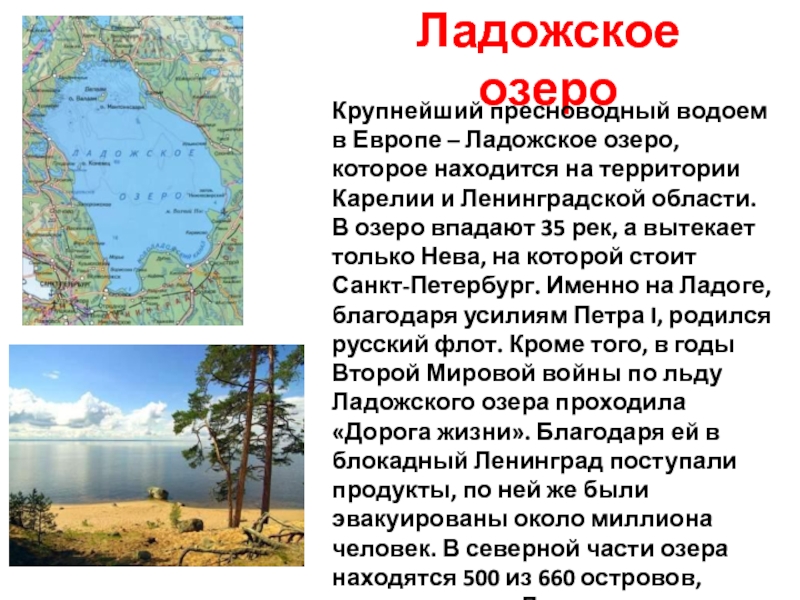 Ладожское озеро — крупнейшее по площади пресноводное озеро Европы (17,8 тысячи квадратных километров).