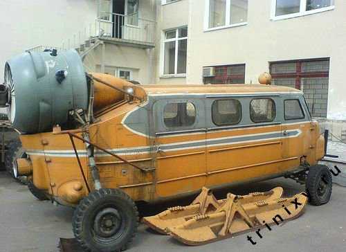 Этот снегоход проектировался в конце 50-х инженером Камовым. В основу был взят автомобиль «Победа».