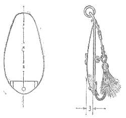Материалом для заготовки блесны могут быть: листовая 1,5-миллиметровая медь, листовая 2-миллиметровая латунь или листовое 2-2,5-миллиметровое железо. Можно применить и заготовку из двух склепанных между собой листов более тонкого металла, с таким расчетом, чтобы блесна весила 23-25 г. Размечать материал удобнее всего по предварительно вырезанной выкройке из жести. Заготовку следует вырубить острым зубилом и обработать по линиям разметки напильником.