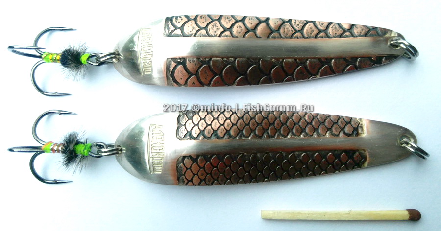 Цвет блесны зависит от прозрачности воды. На приманки приглушенных цветов (медь) ловят в прозрачной воде, а на провоцирующие краски вся надежда при ловле в половодье.