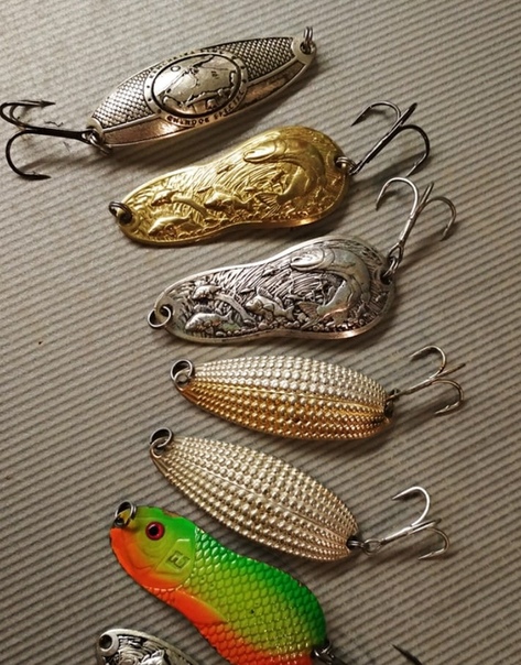 Наиболее популярные колеблющиеся блесны для ловли лосося на реке от 15 до 40 г .