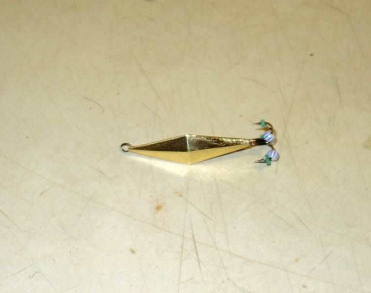 Цепляем тройник через заводное колечко диаметром 4-5 мм к блесне. Все готово.