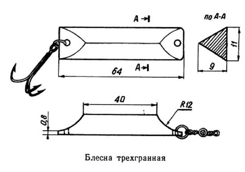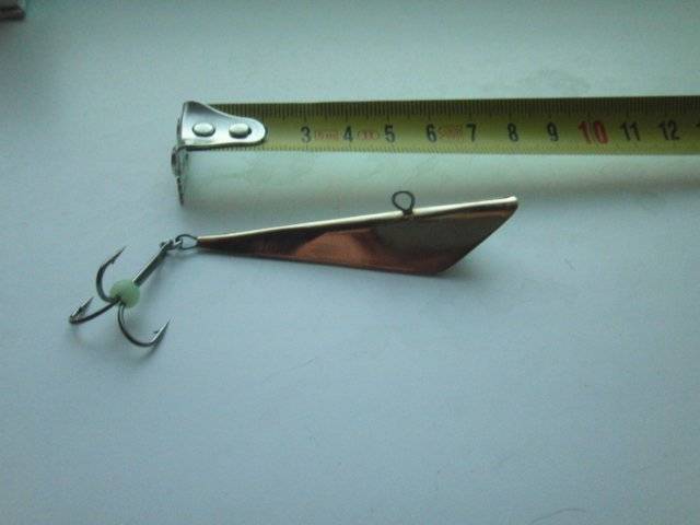 Блесна очень уловистая, особенно по окуню, на глубинах около двух метров. Долгое время была «секретным» оружием рыболовов-спортсменов, чертежи с размерами непросто отыскать в интернете. Кто не верит, попробуйте сами. Приводились отговорки, что чертежи вам не помогут, игру блесны нужно настраивать с помощью прибора, и вообще пробуйте и экспериментируйте сами. Я один из таких экспериментаторов, изготавливающих блесну методом «научного тыка».
