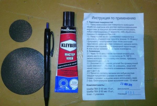 - Небольшие (по размеру трещины) кусочки резины, которые подойдут для заплаток;