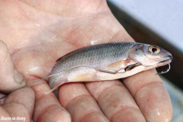 А хищная рыба в таком случае берется на маленьких карасиков, пескарей, окуньков, плотвичку, вьюнов, ершей, уклеек, лягушат, а также на мясо раков и ракушек. Насаживать мальков нужно прочно, но осторожно, подцепляя за обе губы или верхний плавник.