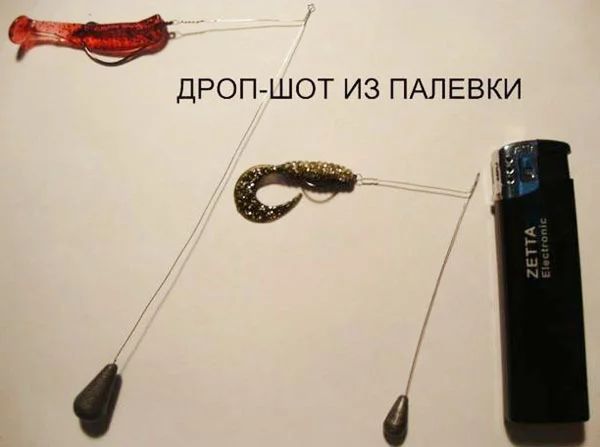 Классический дроп шот, именно тот, который «американский» имеет свои особенности, например, используется только монофильная леска, одинарный крючок, который крепиться жалом к верху. Однако такой вид оснастки для наших условий не подходит, поэтому был немного адаптирован под российские условия ловли с учётом охоты на «зубастого» хищника.