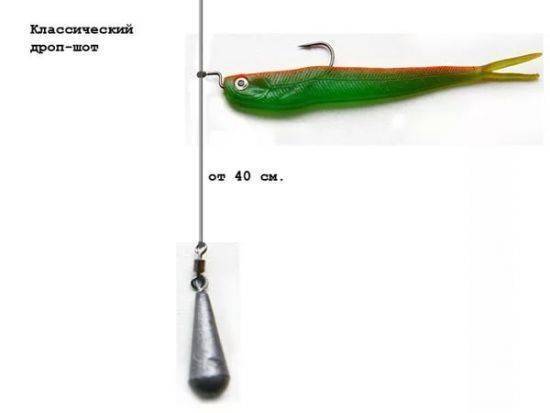 Оснастка «дроп-шот» — это спиннинговый монтаж с концевым грузилом, в полуметре выше него, прямо на леске, ставится крючок с пpиманкой.