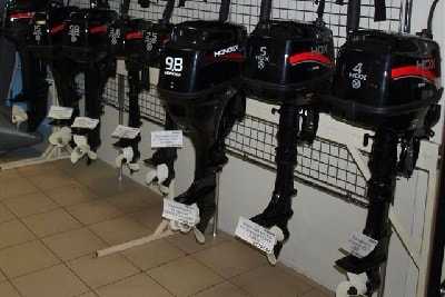 На фото вы видите моторы от Evinrude, Honda, Mercury, Tohatsu, Yamaha.