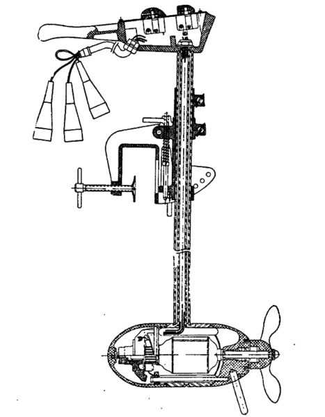 - ножное управление осуществляется с помощью педали, которая даёт возможность точно и быстро изменять скорость и угол поворота лодки;