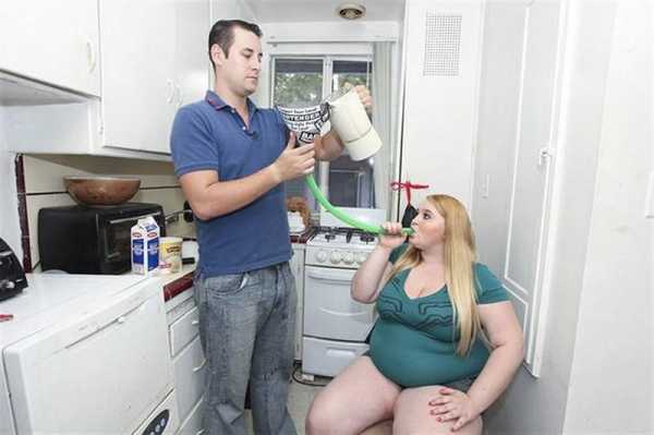 Причем не фунтов стерлингов, а 1000 фунтов веса – это 453 кг. Именно столько она мечтает весить, чтобы быть не только самой толстой моделью в мире, но еще и с красивым числом на весах! В этом деле 28-летней девушке помогает ее бойфренд. Он заливает в неё чуть ли не вёдрами молочные коктейли, таскает бесконечные пиццы, печенья и всё с калориями, что можно найти в забегаловках фастфуд. А та весь день усиленно ест и старается не двигаться напрасно, чтобы случайно калории не потерять.