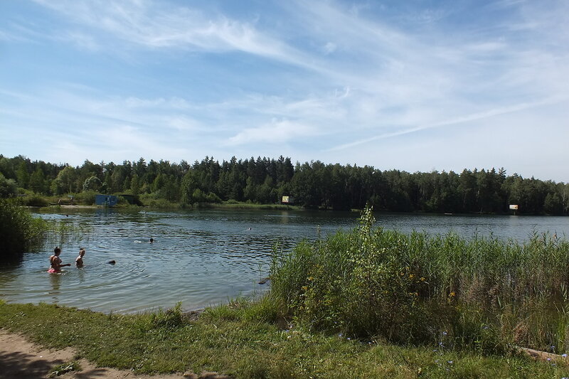 Озеро красивое. Но: очень много осколков на берегу и при входе в воду со стороны леса. Так же не очень приятно купаться когда рядом купаются собаки. Большие, бойцовые и без намордников и поводков.