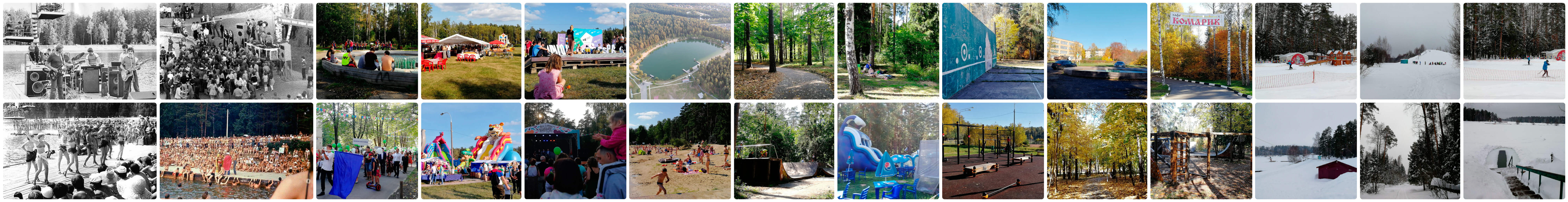 В лесу, у озера и у реки находятся тихие пространства для отдыха. У воды стоят мостики и низкие пирсы, а в лесной зоне расположены беседки для настольных игр, скамейки и лежанки.