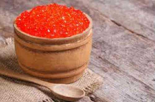 - красны икра или продукт получаемый из лососевых рыб, таких как нерка, семга, кета или горбуша.