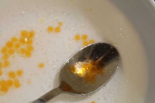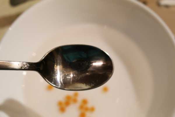 ΠΠΊΡΠ½Π°Π΅ΠΌ Π»ΠΎΠΆΠΊΡ Π² ΡΠΈΡΠ½ΡΠΉ Π±Π΅Π»ΠΎΠΊ, Π° Π·Π°ΡΠ΅ΠΌ Π² Π³ΠΎΡΡΡΡΡ Π²ΠΎΠ΄Ρ. ΠΠΈΠ΄Π΅Π½ Π±Π΅Π»ΡΠΉ Π½Π°Π»Π΅Ρ Π½Π° Π»ΠΎΠΆΠΊΠ΅.