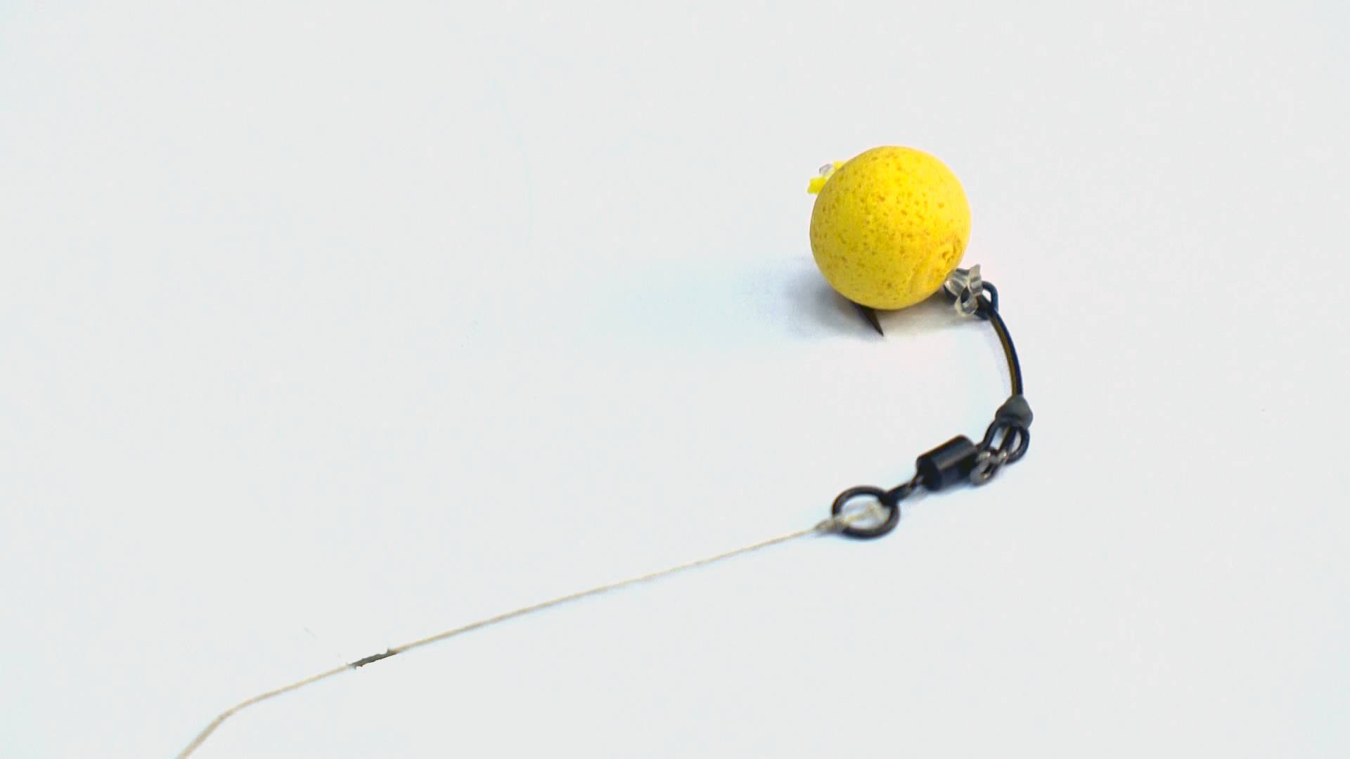 Итак, крючок находится ниже приманки, а приманка прикреплена к петле в леске, плавающей сверху. Это дает карпу другой взгляд на наживку, и он не сразу замечает крючок.