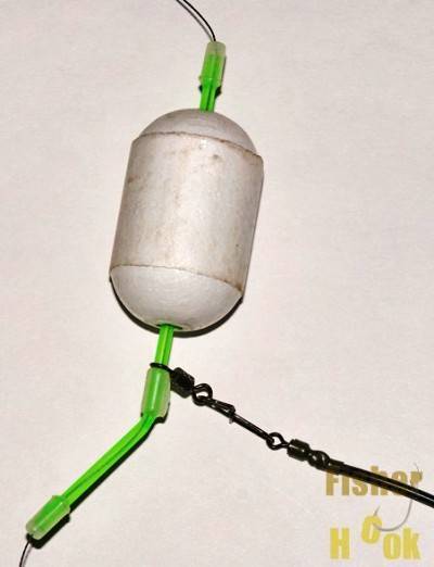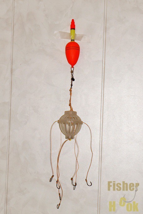 - Дополнительно в конце оснастки можно прикрепить поводок с крючком и насадкой.