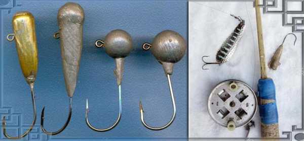 Еще один распространенный вариант – «стукалка». Она выглядит как крупная горизонтальная мормышка с крючками по бокам, на которые одета наживка. Техника ловли идентична блеснению, однако при подбросе приманка опускается на дно, делая характерный стук. Конструкция похожа на балду, которая применяется при ловле окуня.