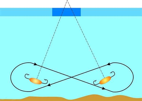 Такое решение гарантирует, что все крючки окажутся лежащими на дне. При этом главная леска при поклёвке скользит через «бегунок», который не мешает заметить поклевку.