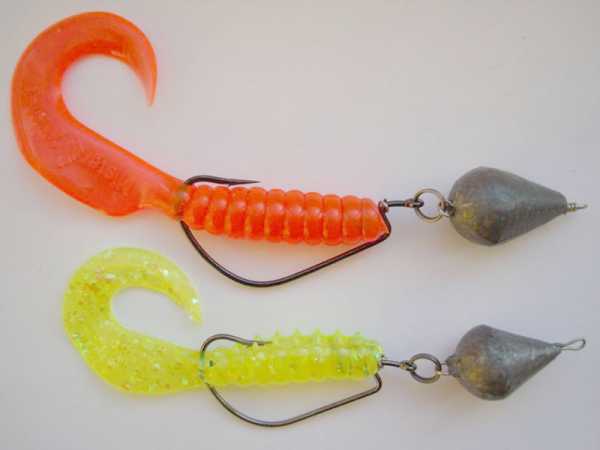 - Оснастка твистера или виброхвоста на крючке-штопоре (получается очень фиксированное соединение, приманка не слетает с крючка и после сотни подсечек)