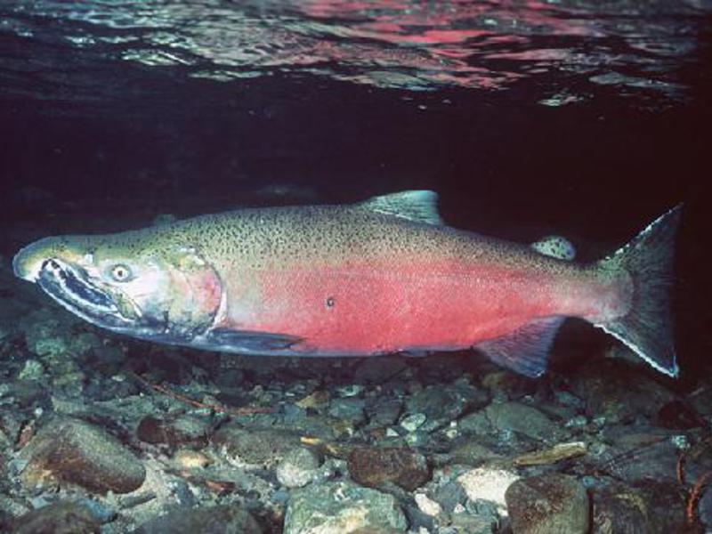 Нерка известна своей ярко-красной кожей, но на самом деле она синяя в океане.