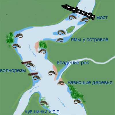 ΠΡΠ»ΠΈ Π»ΠΎΠ²Π»Ρ ΡΠΎΠΌΠ°, ΠΊ ΠΏΡΠΈΠΌΠ΅ΡΡ, ΠΏΡΠΎΠΈΡΡ ΠΎΠ΄ΠΈΡ Π² ΠΊΠ°Π½Π°Π»Π΅, ΡΠΎΠ΅Π΄ΠΈΠ½ΡΡΡΠΈΠΌ ΠΌΠ΅ΠΆΠ΄Ρ ΡΠΎΠ±ΠΎΠΉ ΠΎΠ·ΡΡΠ°, ΡΠΎ ΠΌΠ΅ΡΡΠ° ΠΏΠ΅ΡΡΠΏΠ΅ΠΊΡΠΈΠ²Π½ΡΠ΅ Π΄Π»Ρ Π»ΠΎΠ²Π»ΠΈ ΡΠΎΠΌΠ° ΡΠ»Π΅Π΄ΡΠ΅Ρ ΠΈΡΠΊΠ°ΡΡ Ρ Π±ΠΎΠ»Π΅Π΅ Π·Π°ΡΠ΅ΠΌΠ½ΡΠ½Π½ΠΎΠΉ ΡΡΠΎΡΠΎΠ½Ρ. Π’Π°ΠΌ, Π³Π΄Π΅ Π΅ΡΡΡ ΡΠ΅Π½Ρ ΠΎΡ Ρ ΠΎΠ»ΠΌΠ°, ΠΈΠ»ΠΈ ΠΊΠ°ΠΌΡΡΠ΅ΠΉ. ΠΠ°ΠΊ ΠΏΡΠ°Π²ΠΈΠ»ΠΎ, Π±Π΅ΡΠ΅Π³Π° Π² ΡΠ°ΠΊΠΈΡ ΠΌΠ΅ΡΡΠ°Ρ ΠΎΠ±ΡΡΠ²ΠΈΡΡΡΠ΅, Π΅ΡΠ»ΠΈ ΠΈΡ ΡΡΠ°Π²Π½ΠΈΠ²Π°ΡΡ Ρ Π΄ΡΡΠ³ΠΈΠΌΠΈ ΠΌΠ΅ΡΡΠ°ΠΌΠΈ Π²ΠΎΠ΄ΠΎΠ΅ΠΌΠ°, ΠΈ ΠΎΠ½ΠΈ ΠΎΠ±ΡΡΠ½ΠΎ Π·Π°ΡΠ°ΡΡΠ°ΡΡ ΡΡΠ΅Π½ΠΎΠΉ ΠΈΠ· ΠΊΠ°ΠΌΡΡΠ΅ΠΉ. ΠΡΠΈ ΡΡΠΎΠΌ Π·Π°Π±ΡΠΎΡΡ ΡΠ»Π΅Π΄ΡΠ΅Ρ Π΄Π΅Π»Π°ΡΡ ΡΠΎΠ»ΡΠΊΠΎ ΠΏΠΎΠ΄ Π±Π΅ΡΠ΅Π³.