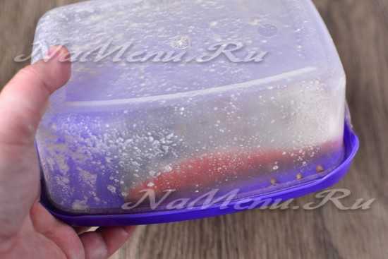 Кладем рыбу в контейнер и засаливаем в течение 2-х суток.