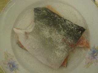 - Соединить соль и сахар. Натереть рыбу.