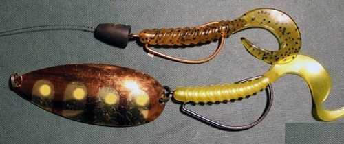 В основном на офсетные крючки монтируют резину (силиконовые приманки) – твистеры, виброхвосты и.т.п.