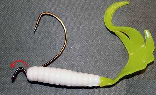 При использовании новомодных твистеров-червей также следует руководствоваться правилом, согласно которому длина крючка от головки до основания равна половине силиконовой приманки (без учета виброхвоста).