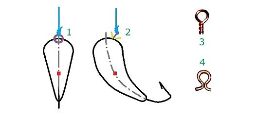 Навязывать такие приманки объективно проще, а свободное положение на леске способно обеспечить максимально реалистичную игру. При этом правильность положения определяется не столько качеством привязки, сколько расположением ушка.