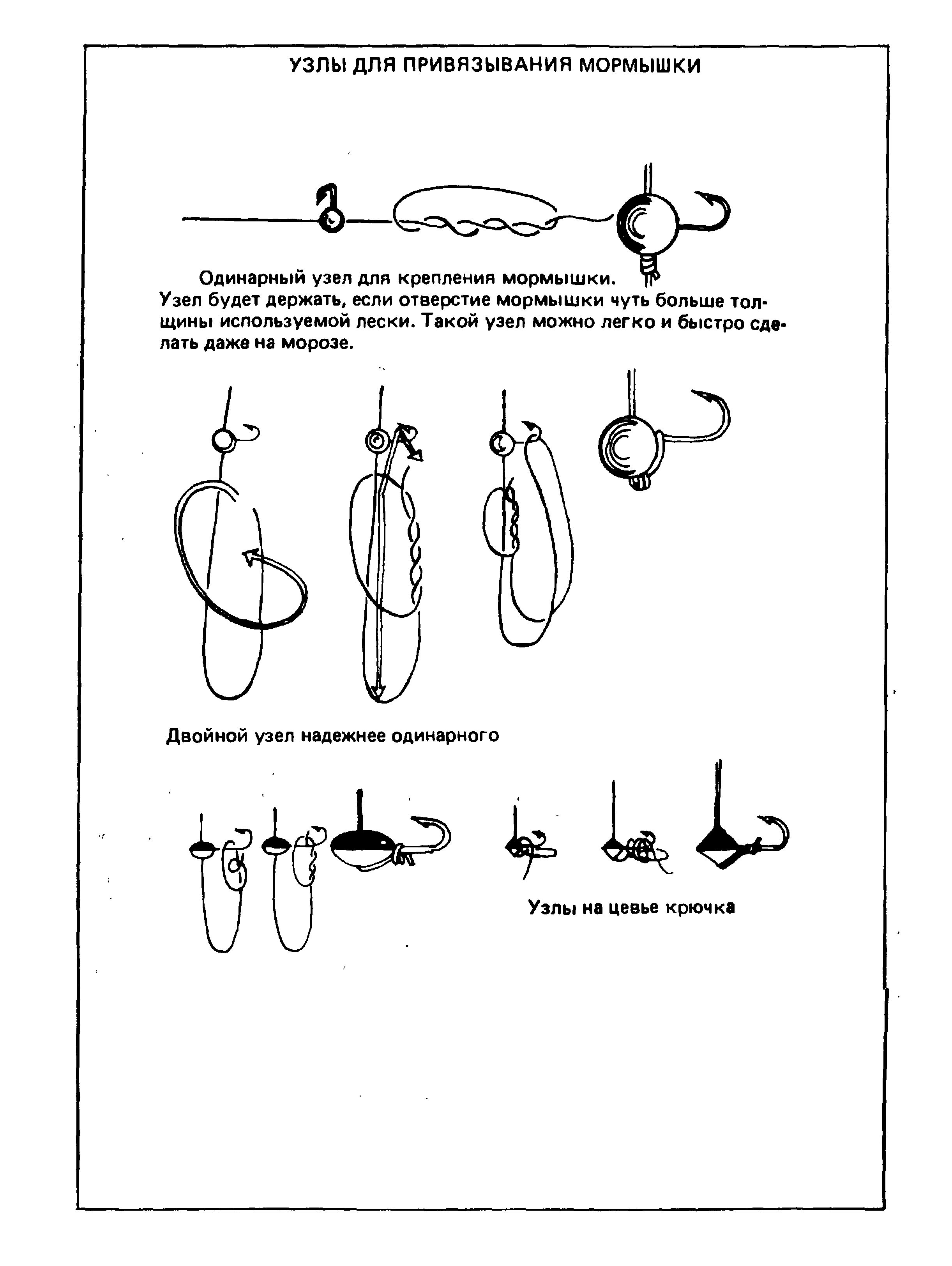 Опытные рыболовы-зимники говорят, что не существует уловистых и «пустых» мормышек: все зависит от умения владеть той или иной приманкой. В число этих умений входит не только правильный подбор приманки в соответствии с условиями ловли и способность придать ей максимально соблазнительную игру. Важно уметь правильно привязать мормышку к леске, ведь и этот момент существенно влияет на результативность ловли.