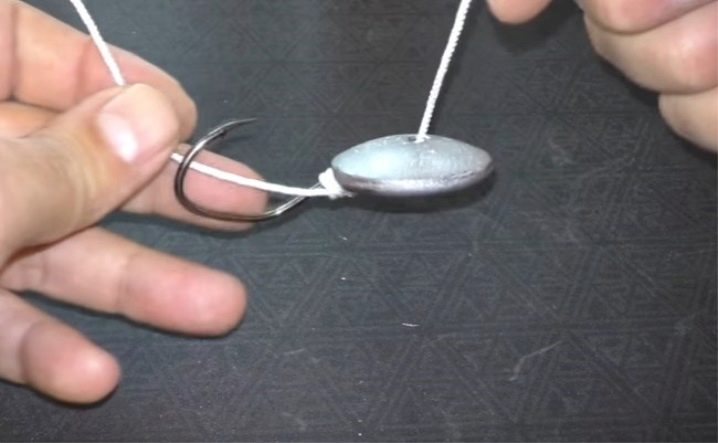 - Делаем простой узел на леске, но не затягиваем его.