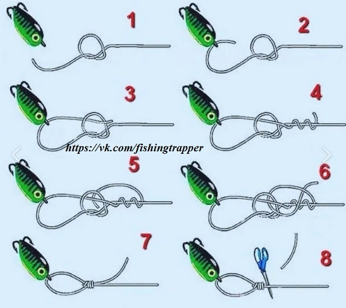 - Затягиваем леску, обрезаем конец.