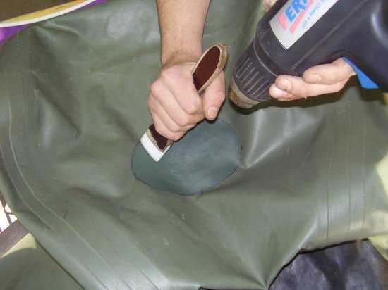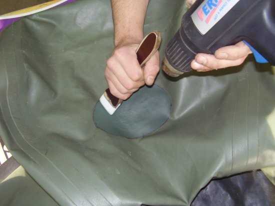 Образовавшуюся дырку или порез на ПВХ лодке заклеивают в следующей последовательности: