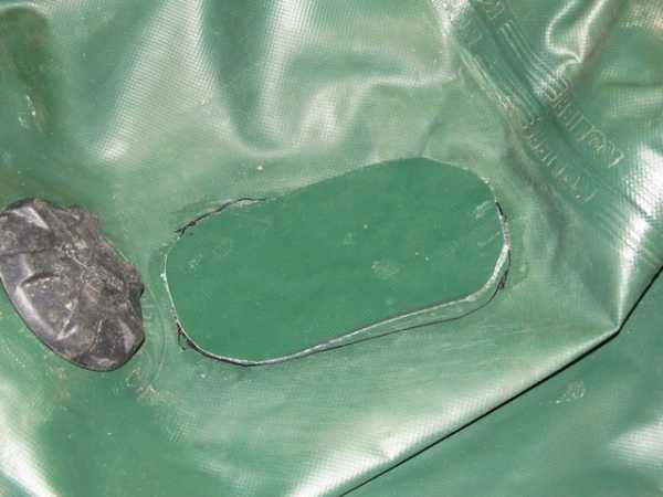 Прожиг лодки заклеивается теми же клеями, но предварительно необходимо вырезать заплатку и придать ее овальную форму, аккуратно обрезав все края. По размеру заплатка должна быть больше,чем место повреждения на несколько сантиметров
