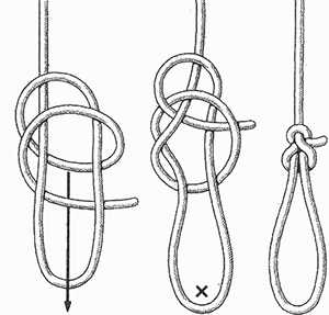 Одна из особенностей самозатягивающегося узла заключается в том, что при воздействии на него силы происходит произвольное его затягивание. Причем с увеличением прикладываемой силы повышается крепость данного соединения.