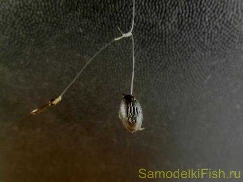 - Петля лески, что была завязана изначально, продевается через кольцо, которое получается на конце всей конструкции, после чего затягивается.