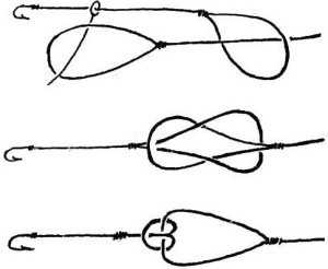 - крепление к основной леске нескольких поводков змеиным узлом.