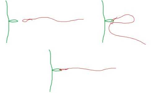 Как видим, в узле леска, к которой будет привязываться крючок или мормышка, выходит из узла практически параллельно основной и направлена почти вверх к удочке